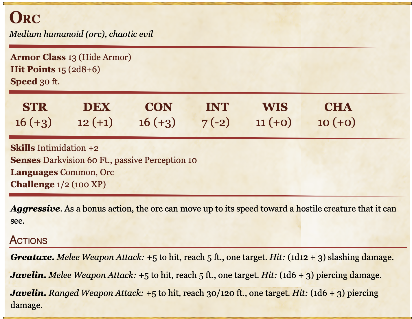 So I looked up orcs in the Monster Manual to get their stats, and this is what I found (sort of). This image is from Roll20, though what I found was obviously in the Monster Manual.
